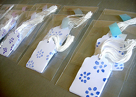 Projekt: Für den Weihnachtsmarkt in Zürich-Wipkingen [Ende November auf dem Röschibachplatz] produzierte ich Geschenkanhängerli Projektstart: November 2009 Projektinhalt: Mit meinen selbergemachten Stempeln und einem Label-Stanzer entstanden Unikate in diversen Farben und Ausführungen |