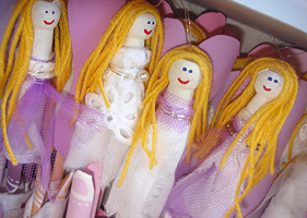Projekt: Für den Weihnachtsmarkt in Zürich-Wipkingen [Ende November auf dem Röschibachplatz] produziere ich Ängeli Projektstart: November 2007 Projektinhalt: Als individueller Weihnachtsschmuck habe ich 2007 zum ersten mal Ängeli aus Wäscheklammern hergestellt. Da die Nachfrage riesig war, produziere ich für den Weihnachtsmarkt jeweils ca. 50 Stück. |