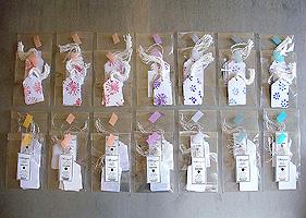 Projekt: Für den Weihnachtsmarkt in Zürich-Wipkingen [Ende November auf dem Röschibachplatz] produzierte ich Geschenkanhängerli Projektstart: November 2009 Projektinhalt: Mit meinen selbergemachten Stempeln und einem Label-Stanzer entstanden Unikate in diversen Farben und Ausführungen |