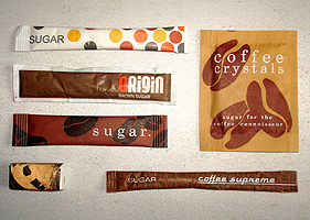 Sammeln von Zuckersäckchen aus aller Welt. Sujets von allen Seiten fotografieren. Bilder freistellen und veröffentlichen auf www.zuckerzucker.ch